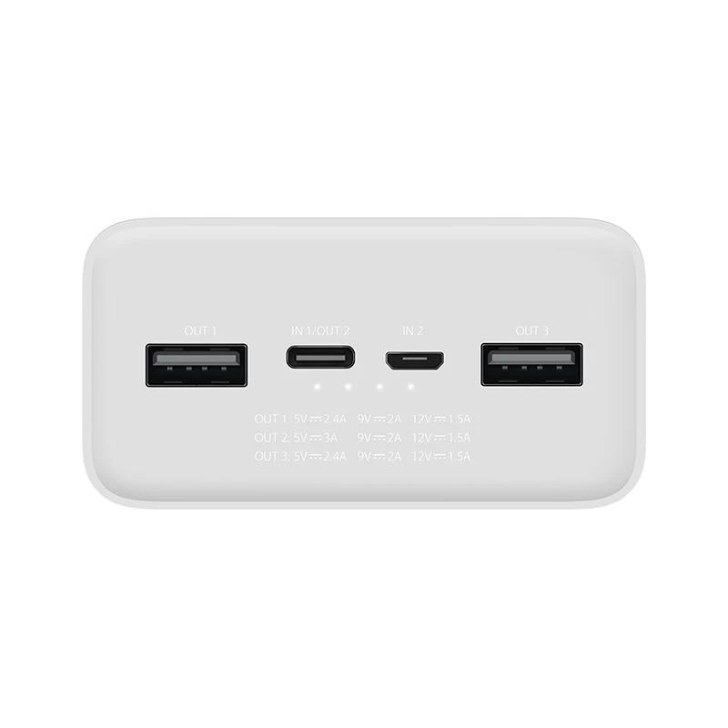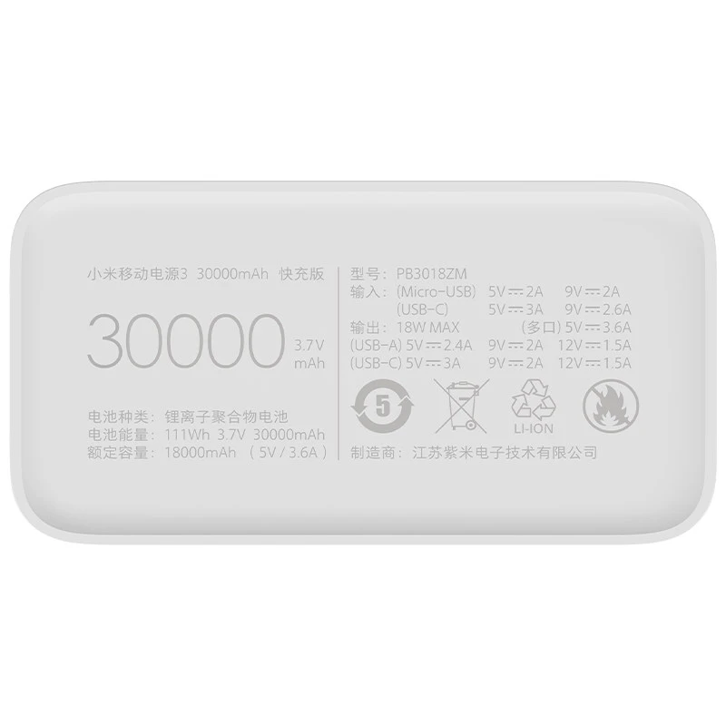 شارژ سریع و همزمان سه دستگاه، دارای دو درگاه خروجی USB و یک عدد Type-C دو طرفه با توان خروجی ۱۸ وات دارای حالت ویژه جریان کم (low-power) برای شارژ وسایل کوچک مانند هدفونهای بیسیم و ساعتهای هوشمند، که در شارژ با برخی از پاوربانکها دیگر با مشکل روبرو هستند؛ برای اینکار کافیست دو بار دکمه پاور را فشار دهید. شارژ ایمن و محافظت چندگانه از باتری دستگاهها در برابر اتصال کوتاه، افزاش جریان، ولتاژ، تخلیه شارژ، حرارت، ریست شدن و غیره مجهز به دو پورت ورودی MicroUSB و Type-C با قابلیت پشتیبانی از شارژ سریع پاوربانک با حداکثر توان ۲۴ وات باتری لیتیوم پلیمری با ظرفیت بالا ۳۰۰۰۰ میلی آمپر، شارژ سریع پاوربانک با شارژر ۱۸ واتی در ۱۰ ساعت و با شارژر ۲۵ واتی در مدت ۷.۵ ساعت توانایی فول شارژ کردن گوشی Mi ۱۰ شیائومی تا ۴.۵ بار، Redmi K۳۰ Pro تا ۴.۵ بار و گوشی آیفون SE بیش از ۱۰ بار